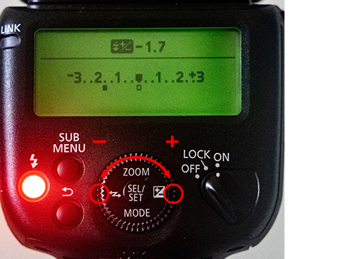 Taking test shots, adjust the flash exposure compensation as necessary.