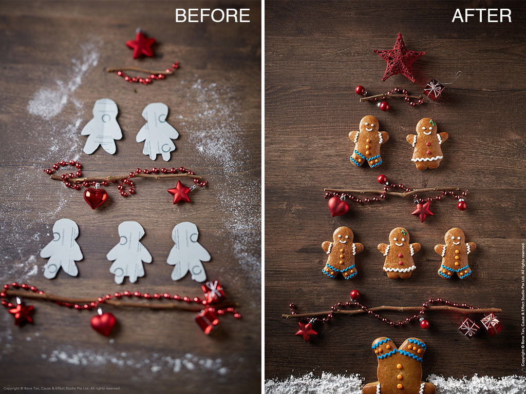 Sketch out the ideas for each shot. Besides focusing on the main subject, consider the props needed to tell the story. For an example, let’s say we wish to create a rustic Christmas evening, picking up items such as worn-out wooden table, vintage crockery and festive lightings will add on to rustic ambience. Although props are essential, they must never overpower the main subject.