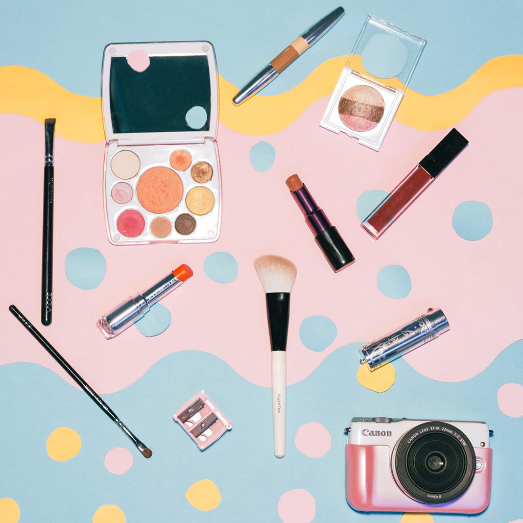 If you follow influencers, you have probably seen your fair share of flat lays. They’re actually not that difficult to create. Lumi and Lenne used some coloured paper and smaller shapes to form this product feature. Another quick tip is to use the tilt screen of your camera to see your frame when taking the shot.