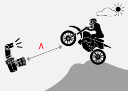 The sky was slightly overcast with drastic changes in the exposure. Under direct sunlight, a harsh shadow was cast on the rider, causing the face to turn out dark in the photo taken at the standard exposure. When the sun was obscured by the clouds, the result was a photo with little impact and a low contrast. To resolve these issues, I made use of a flash.
