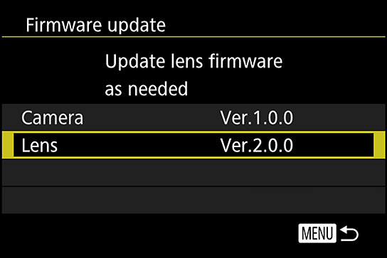 To check the lens version, select "firmware Ver." in Function Setting Menu 4.