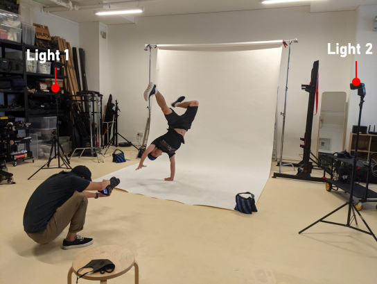 A streamlined, dual off-camera light setup to create a dramatic moment of action