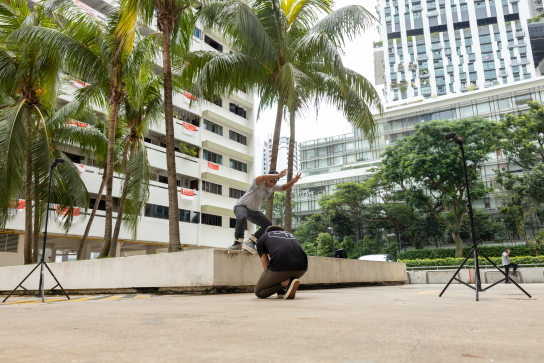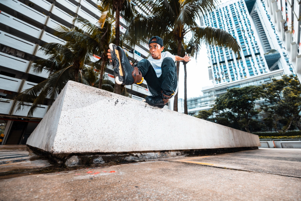 Amid the rainy weather that plagued most of the time that I had the flashes, there was a window of sunlight and I grabbed the opportunity to do a quick shoot outdoors. The compact but powerful and versatile flash setup once again proved handy, as you can see here where I used the flashes off-camera in high-speed sync mode to freeze the movement of this skater at the peak of his trick.