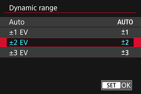 You can choose the bracketing interval in HDR mode. I felt that an interval of ±2 exposure stops gave results that most closely resembled the scene in front of my eyes.