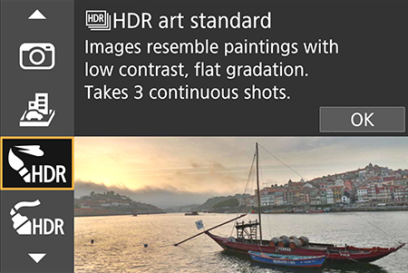Most cameras equipped with Creative filters have four HDR Creative filter modes. The camera captures and blends three successive exposure-bracketed shots in these modes in-camera. It then applies a filter to the blended image.
