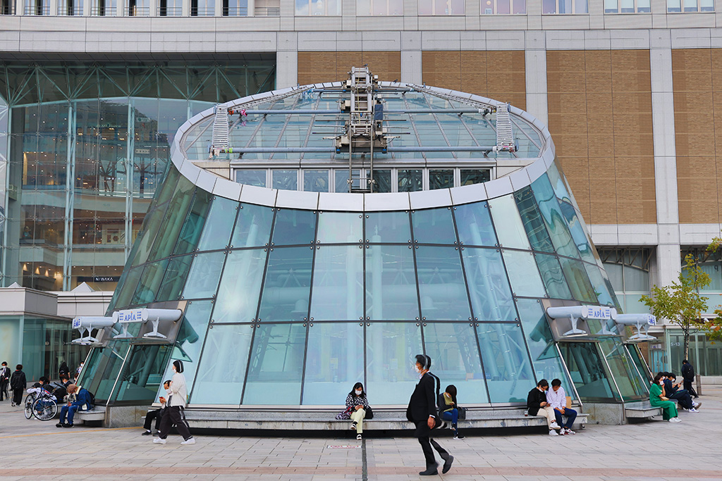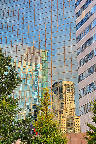 The HDR Art Vivid mode lifts the shadows just enough to recover detail. The increased saturation on the glass panels makes them pop and look clearer. Tonal adjustment on the façade of the building in the background makes it look flatter, just like a drawing.