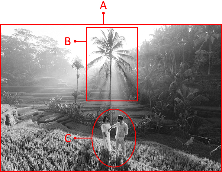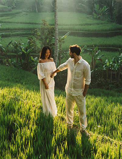 The scenery and the calm yet exotic atmosphere of the place attracts many people looking for outdoor portraits, especially for couple or honeymoon photos. I get a lot of rice field shoot requests! To me, light rays, palm trees, and rice fields are an unparalleled combination. They harmonise well together and evoke the idea of tropical beauty, so I will always try to include all three in my images.