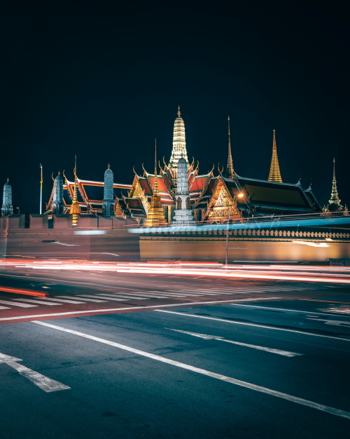 I shot this long exposure shot from opposite Wat Phra Kaew. With the In-Body IS of a camera like the EOS R6, such images are possible handheld.