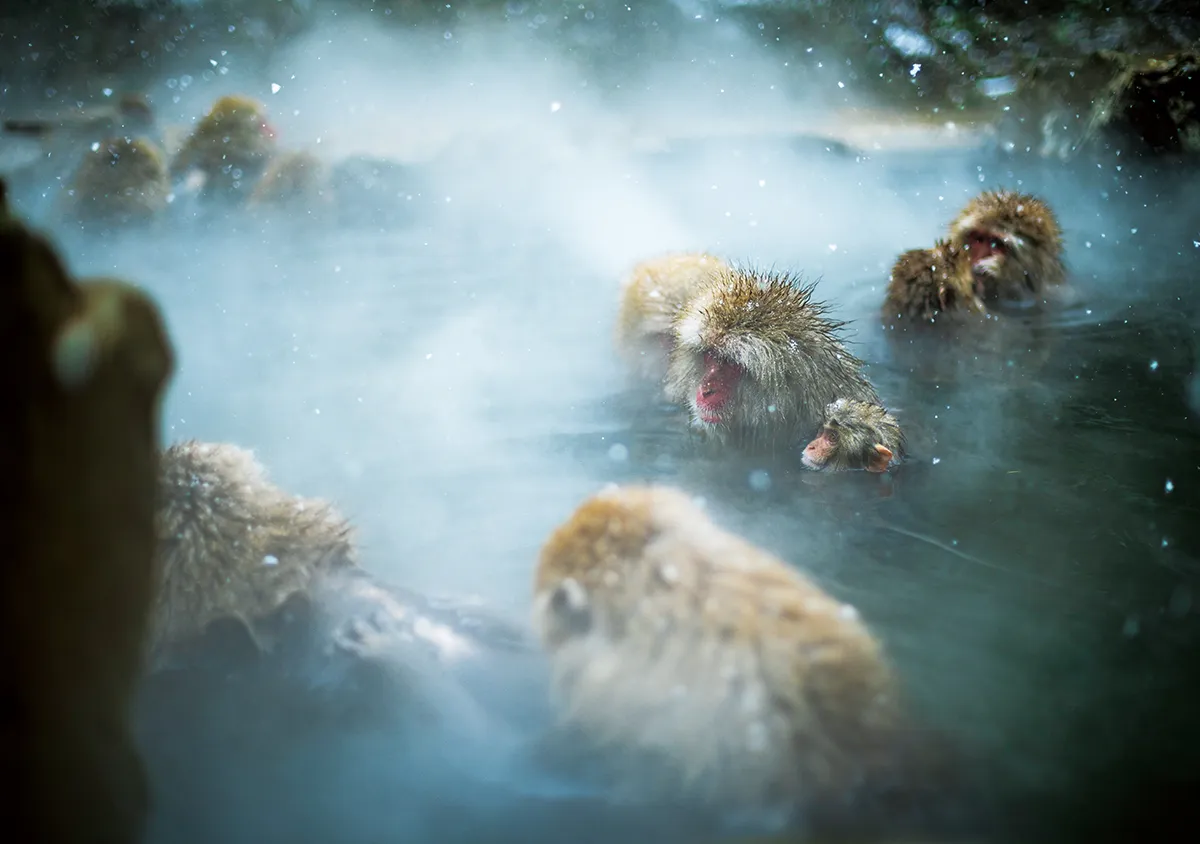 The Jigokudani Monkey Park in Nagano Prefecture, Japan, is well-known for its wild snow monkeys (Japanese macaques) who happen to love bathing in the hot spring pool (onsen) in the park especially in winter. The monkeys are also a favourite subject of wildlife photographer Yukihiro Fukuda. Here, he shares how he captured “warmth” in this evocative shot of them relaxing in the onsen. (Reported by Yukihiro Fukuda, Digital Camera Magazine)