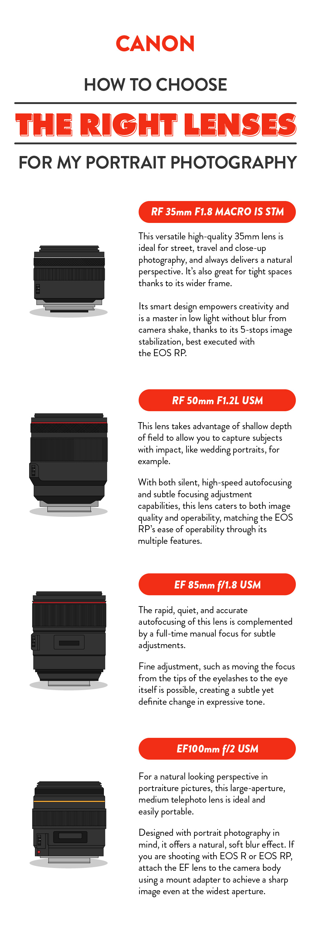 Choosing the right lenses can be daunting. Start by thinking about the type of photographs you currently take. Then use this handy infographic to help you pick the right lenses for your photography needs.