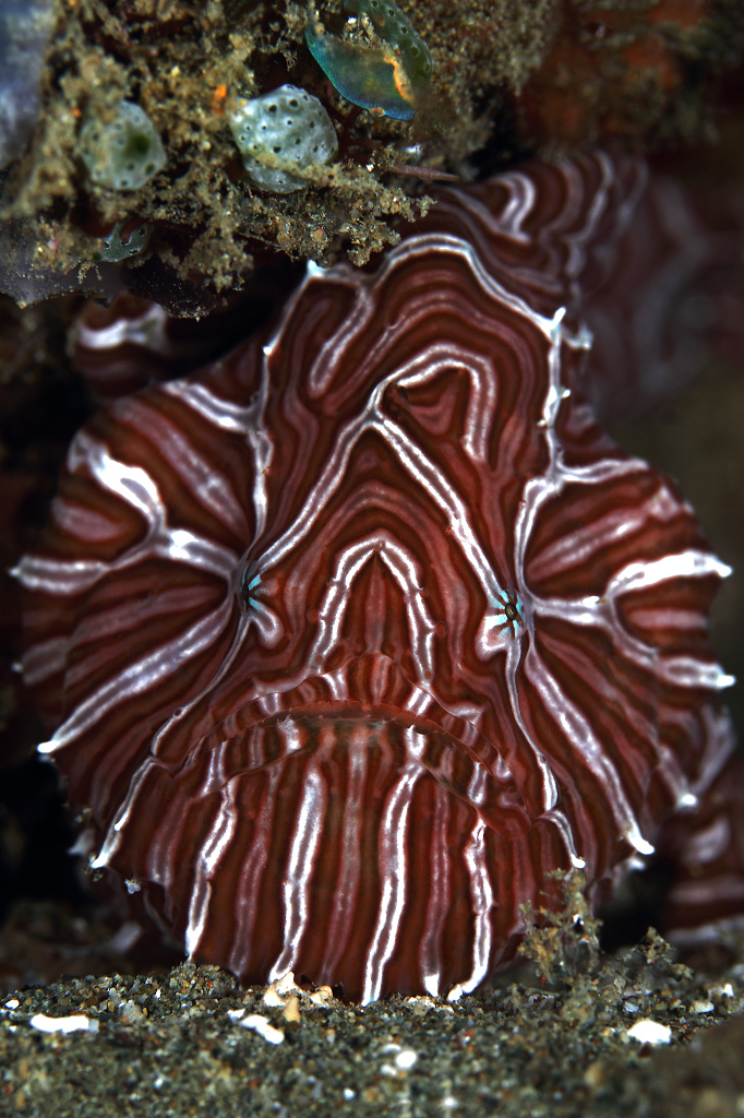 It is best to use a lower strobe power on the sensitive Psychedelic Frogfish (Histiophryne psychedelica)
