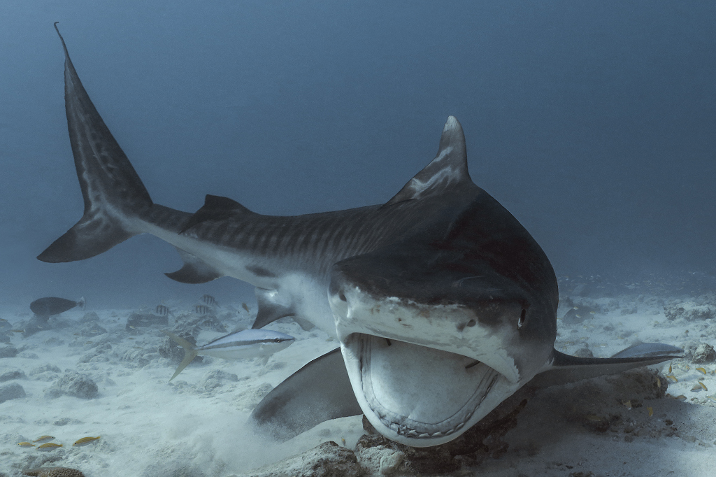 Obviously, this Tiger Shark (Galeocerdo cuvier) image was shot without strobes