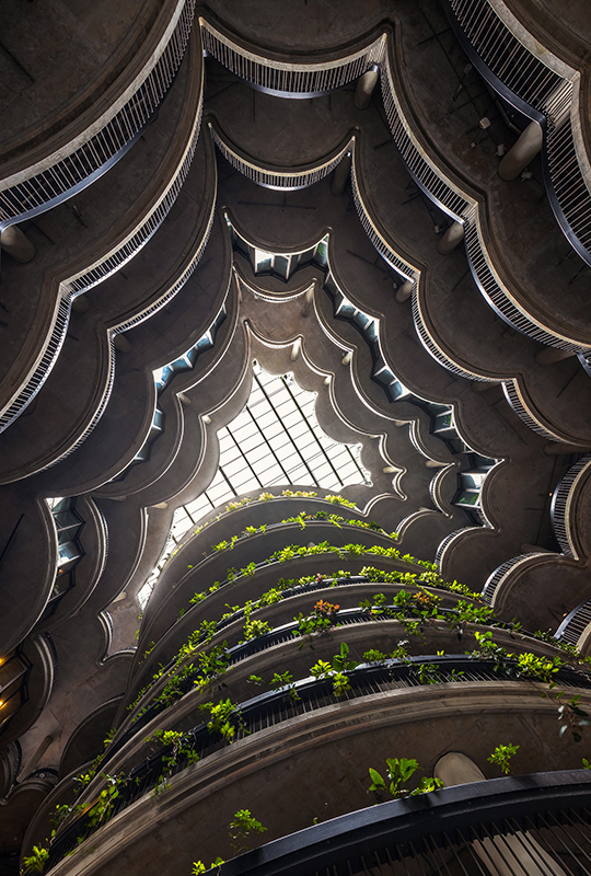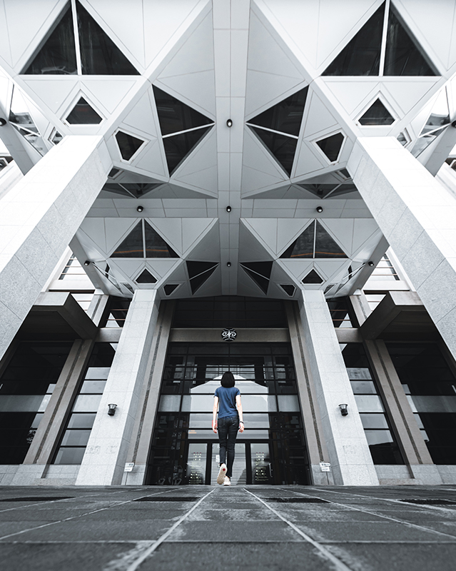 To put bottom-up perspective in layman’s terms means to lie down on the floor and look up. This unique viewpoint is often used to capture tall architectural buildings (both internal and external) to create more interest. You can also use it to capture a subject that shows a more interesting side when seen from the bottom up, like the underside gills of a mushroom or the underside of leaves!