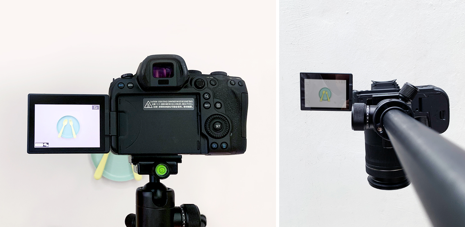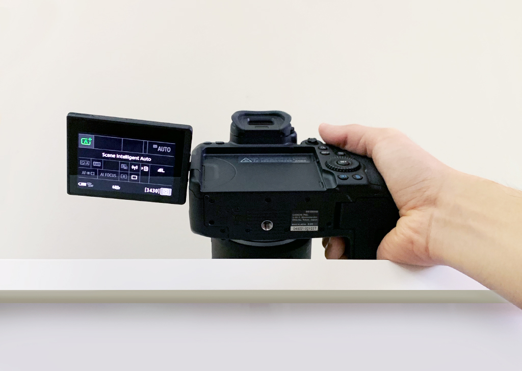 The benefit of the Vari-angle LCD screen is that you don’t have to strain yourself to look through the viewfinder to see what you’re shooting. It also allows you to adjust your composition or the subject/products within the frame. Check out the positioning of the Vari-angle LCD screen in the example below.
