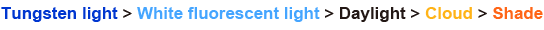 To recap our previous article about the White Balance function, white balance is a setting used to change the colour balance in your photos to make it look warmer or cooler. If you use “Cloudy, twilight, sunset” mode, your photos will look reddish, whereas if you use “Tungsten light” mode, they will appear bluish. The basic settings for colour balance is as seen below.