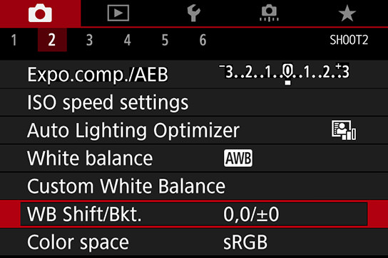 Your camera should have a [WB Shift/Bkt.] option available in the menu.