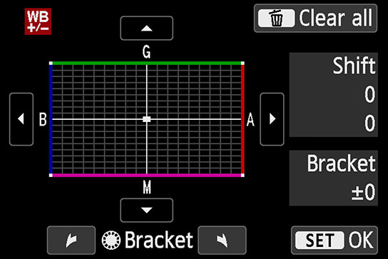 If you select the [WB Shift/Bkt.] option, a screen like the one below will appear.