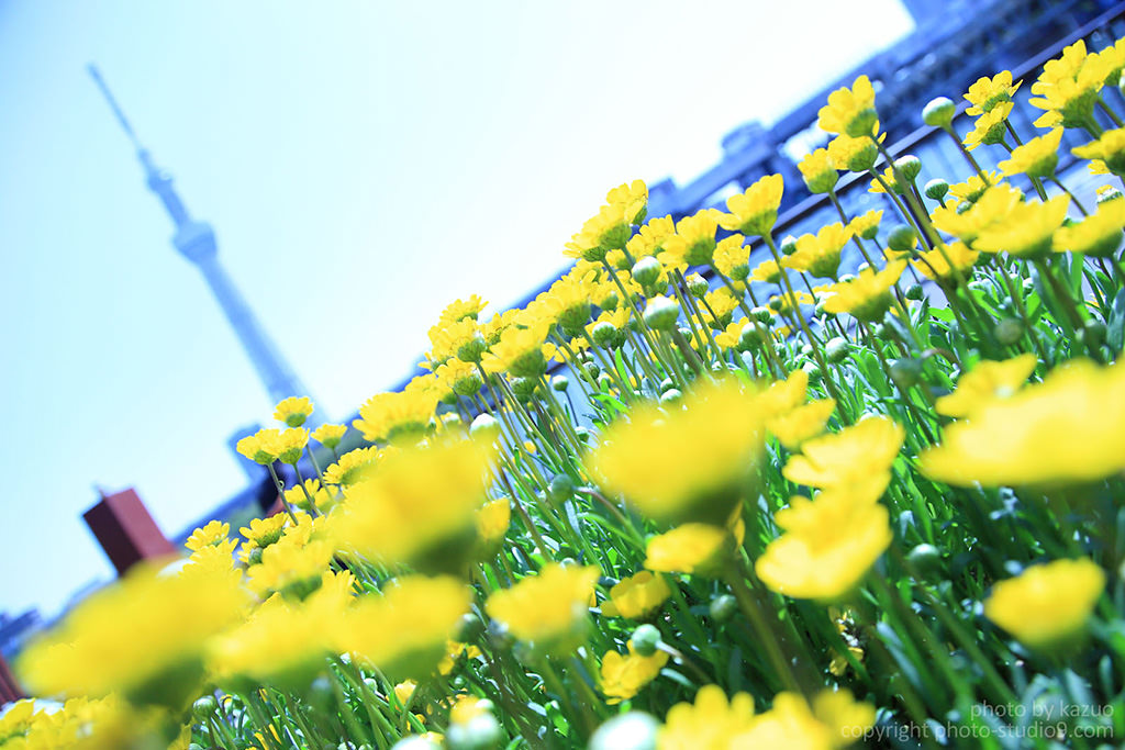 You can see that the green colour of the flower stems has been emphasized considerably. The sky also appears slightly greenish, which gives the image a unique ambience.