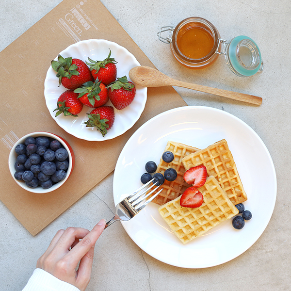 Adding a little human touch to your photos can make a lot of difference. Grab a fork, pick a cup up, or hold a strawberry… these little actions can help create a more dynamic and personal shot. However, the hand should not outshine your food in the setting; let the food be in the limelight while the hand stays on the edge of the frame. If you are planning to include a few more pairs of hands in the shot, place them at different corners of the photo and not crowd at just one area.Â