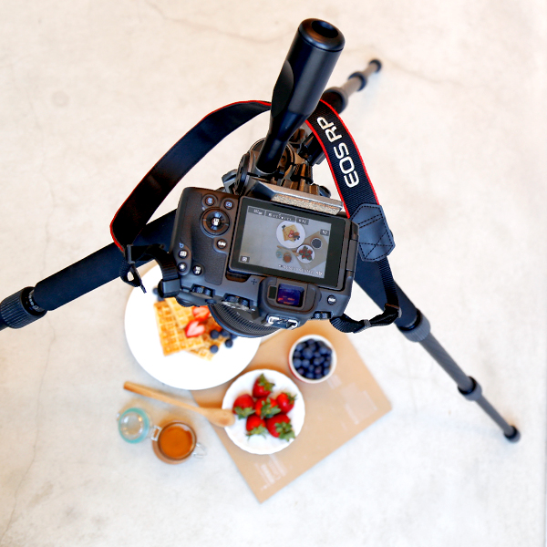 Shooting from a bird’s eye view is the key to any flatlay shots. The EOS RP’s three-inch Clear View LCD II Vary-Angle Touchscreen LCD lets you adjust your shots in various levels. You will have the flexibility to shoot not just top-down but many other angles (even selfies). For this shoot, we’ve used a tripod (which you can easily get in most camera equipment stores) to help us gain height while our hands were free to adjust the food and props. The brightness of the EVF and settings can be easily adjusted through the LCD monitor, giving you the ultimate convenience when shooting food flatlays! Find out more about the