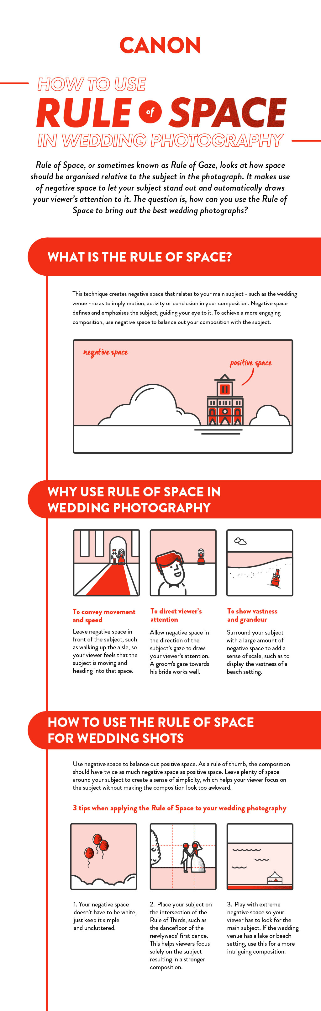 How can the Rule of Space improve your wedding photos? Let this infographic guide you on how to use this technique to compose stronger and more engaging photos for weddings.