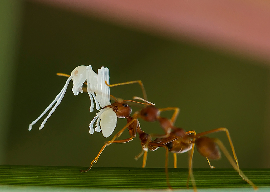 The image above was taken near a fallen ant nest where worker ants were scurrying to save their next generation of ants. For such images, the beauty lies in the learning of their behaviours and patterns. An instinctual behaviour such as relocating their larvae when met with danger shows how they manoeuvre and overcome obstacles. If you’re particularly interested in ants, you can also look out for images of them foraging for food with their mandibles (an action-packed shot) or unique behaviours such as Necrophoresis (the practice of removing and dumping dead ants) and more.