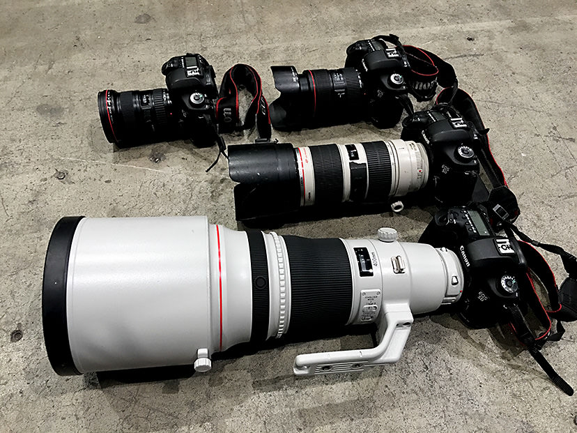 Kamiiisaka: I use four EOS 5D Mark III cameras at the same time for a live concert shoot. As a rule, I don't change the lens during a live concert because I don't have time and I hate getting dust inside the sensors. I attach a variety of lens on to each of the cameras, ranging from wide-angle lens to telephotos. It takes physical effort to keep shooting for two hours while carrying four cameras.