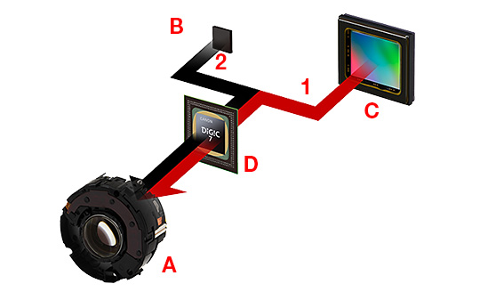 A: IS Unit/ B: Gyro sensor/ C: Imaging sensor/ D: DIGIC 7