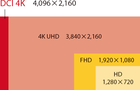 4K movies come in two frame sizes, known as the UHD and DCI standards. The UHD standard is about twice the size (both vertically and horizontally) of Full HD quality and has a resolution of 3,840 x 2,160 pixels. Meanwhile, the DCI standard is a size used for movies, and has a resolution of 4,096 x 2,160 pixels.