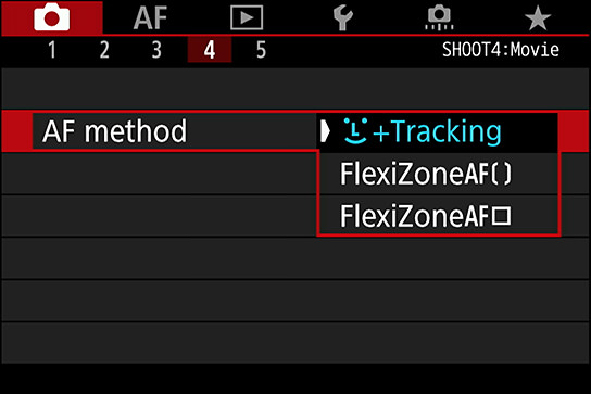 Dual Pixel CMOS AF, which allows for high-speed AF, also demonstrates outstanding performance during movie shooting. Three AF methods are available for selection during movie shooting: Face Detection + Tracking, FlexiZone – Multi AF and FlexiZone – Single.
