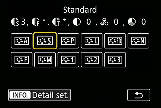As with still photography, you can now select a Picture Style option for the movies according to the scene. If the Picture Style effect is too subtle, you can also fine-tune settings such as contrast and saturation using the Detail setting option.