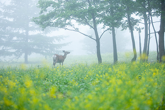 A shot of a Hokkaido Sika Deer taken at the Shiretoko Peninsula in Hokkaido. As the shoot took place at a time when there was little sunlight in the forest, I chose a lens with a bright f-number. When using the bokeh effect here, I took care to make skilful use of it to ensure that the photo would not end up looking too cluttered. (Photo and text: Yukihiro Fukuda)