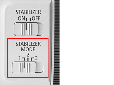 Besides the image stabiliser switch that allows you to turn the in-lens image stabilisation on and off, Canon’s professional telephoto lenses also feature an image stabiliser mode selector switch, which allows you to choose between 3 different image stabilisation modes (2 modes on older lens models) during handheld shooting.
