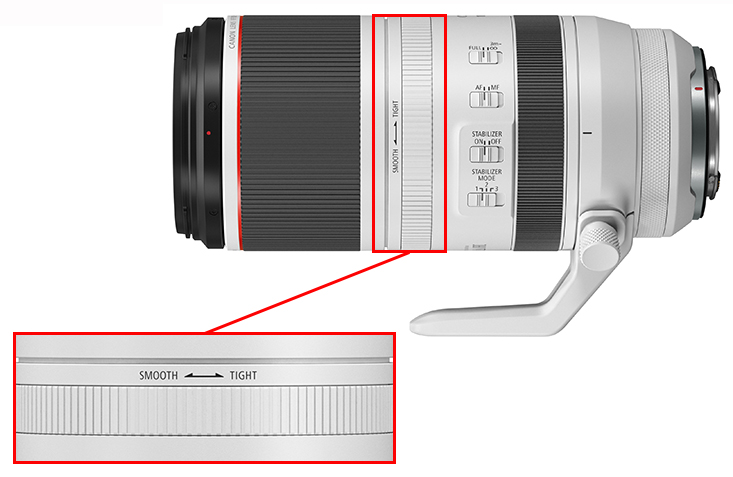 This ring lets you adjust the torque of the zoom ring to your preference. ‘SMOOTH’ makes the zoom ring turn with less effort whereas ‘TIGHT’ requires more torque to turn the ring.