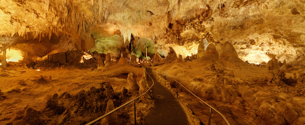 Increase the ISO setting to a level that will produce images that are not too grainy and do not require a tripod since most caves do not allow tripods for fear of producing a tripping hazard if they are set up on the trail.