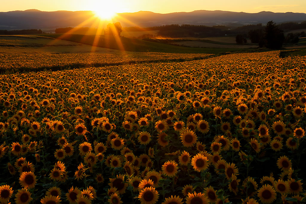 Brightened by the setting sun in the background, the sunflowers glowed beautifully. Thanks to the wide dynamic range, the EOS 5D Mark IV is capable of reproducing the subject in exact detail even under harsh shooting conditions such as the one in this example.