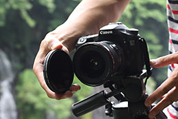 In order to depict the silkiness of the waterfall, you need to slow down the shutter speed. First of all, I selected Aperture-priority AE, ISO 200, and the largest aperture setting of f/22. However, I had to attach a filter as I could not obtain a sufficiently slow shutter speed in the day. Even so, the ND8 filter I had was unable to produce satisfactory results, so I overlapped it with a PL filter to cut down the amount of light. Note that when you attach filters to a wide-angle lens, the filters may be captured at the four corners of the image, and vignetting may occur.