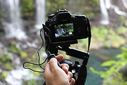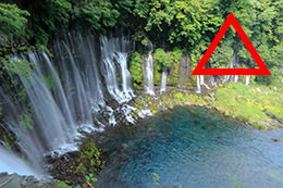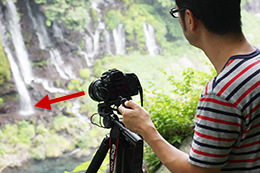 A wide-angle lens captures a broad area, so make sure to check even the corners of the viewfinder image when you are composing a shot. To prevent objects such as wild grass from being included in the composition of the main shot on the left, I determined the angle while reducing elements that were being captured, such as the waterfall, waterfall basin, and the green of the trees.