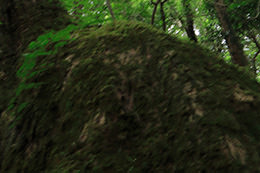 This is a handheld shot taken inside a dark ocean of trees with a wide-angle lens. Light from the sky above penetrated through the leaves and created a soft ambience, so I brightened the image by compensating the exposure to +1EV. Although ISO 25600 belongs to the super-high sensitivity range, there is negligible noise. Raising the ISO speed intentionally to increase the aperture value allows for depictions such as those that show the expression or texture of a landscape, thereby widening the scope of your photographic work. Camera shake is unlikely to occur at a shutter speed of "1/lens focal length" or slower. This can be used as a guide for selecting an ISO speed.