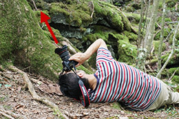 In this shot of an ocean of trees that stretches into the cave, I tried to bring out the vitality of the trees from a low angle. With little light entering the forest, the surrounding was slightly dark, which increased the likelihood of camera shake. Despite so, I was able to produce this handheld shot by raising the ISO speed.