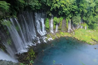 Water plunging down from Mt. Fuji turns out silky, thanks to the slow shutter speed. Here, I used a wide-angle lens to bring out the depth in the waterfall, which unfolds itself dynamically toward the two sides.