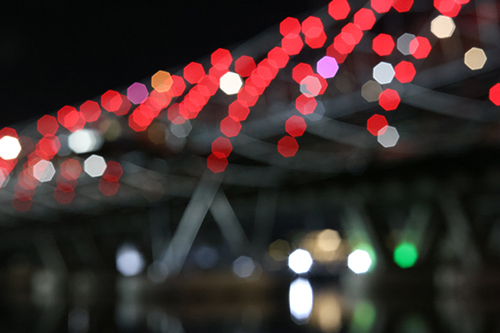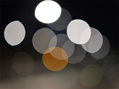 The above image was deliberately placed out of focus and shot at f/16 on a lens with 7 aperture blades. Notice how the bokeh lights form a 7-sided polygon, reflecting the shape of the aperture opening.