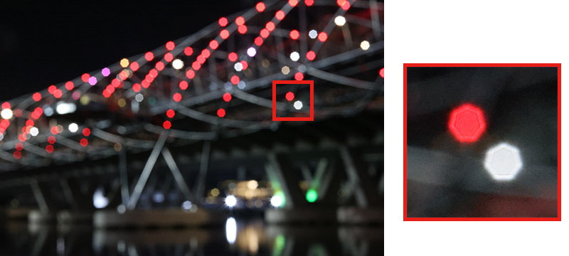 Regardless of the number of aperture blades, the shapes of the bokeh lights are the same.