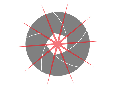 A 10-bladed aperture forms a star with 10 points as each corner is directly opposite from another corner.