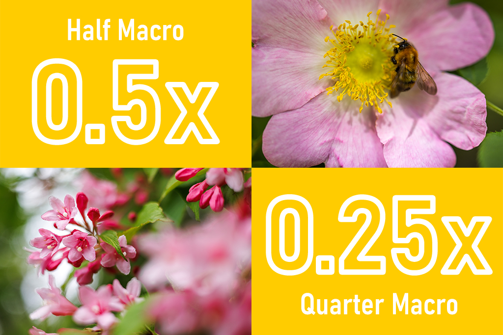 0.25x magnification: Captures larger flowers and plants fully in frame