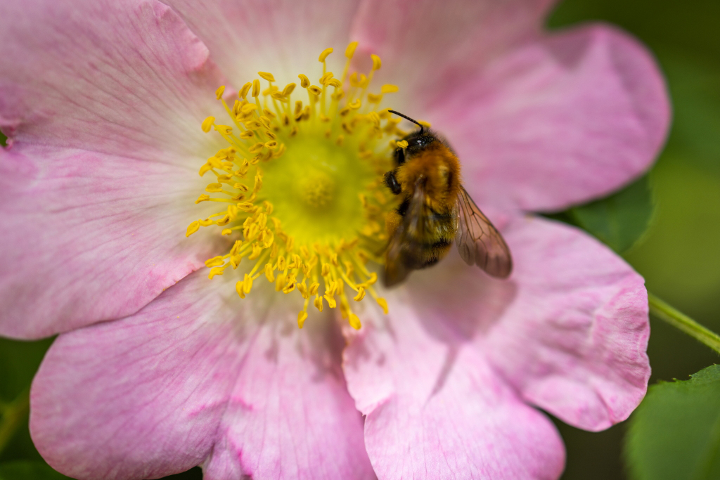 At 0.5x magnification, I was also able to capture a decent close-up of this honeybee sucking nectar from a flower. I could shoot tight enough to make framing and composition easy.