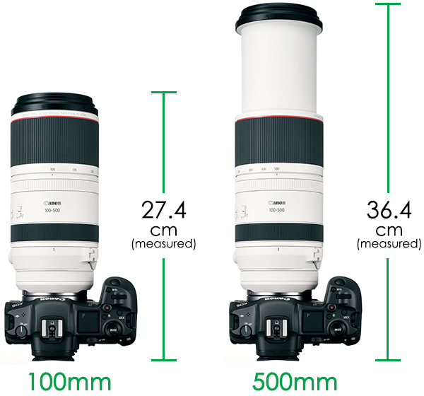 I found the EF100-400mm f/4.5-5.6L IS II USM rather light, but even with the 100mm increase in focal length range, the RF100-500mm f/4.5-7.1L IS USM is 200g lighter. You don't need a mount adapter to attach the lens to an EOS R system camera, which reduces the total gear weight by even further. It makes a difference, especially when shooting handheld for long periods.
