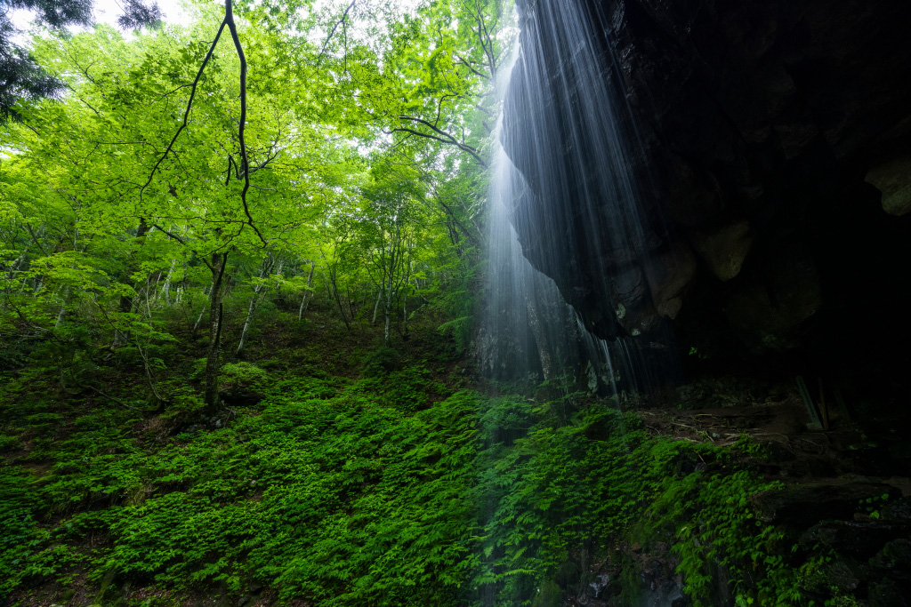 When the waterfall flow is weak, the only way to create an impactful shot that makes it look powerful is to go closer. On a narrower lens, this would usually force the foliage in the sides and background out of the composition. However, the 14mm end allowed me to include them and incorporate lots of green into the image.