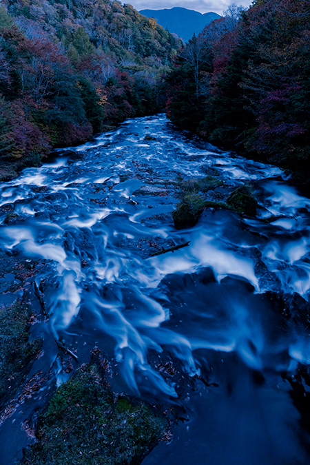 After sunset, the flowing river seems to drift on top of the terrain like dreamy blue and white silk. Despite the high ISO speed, the EOS R5 Mark II and RF24mm f/2.4L VCM combination achieved a beautifully clean image with little visible noise.