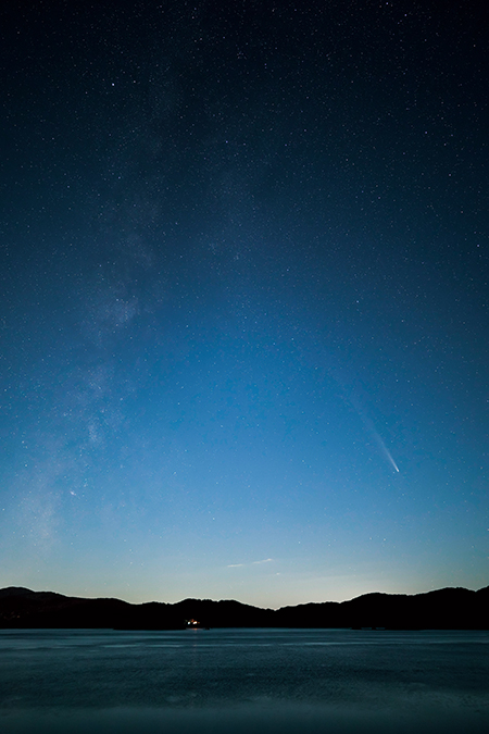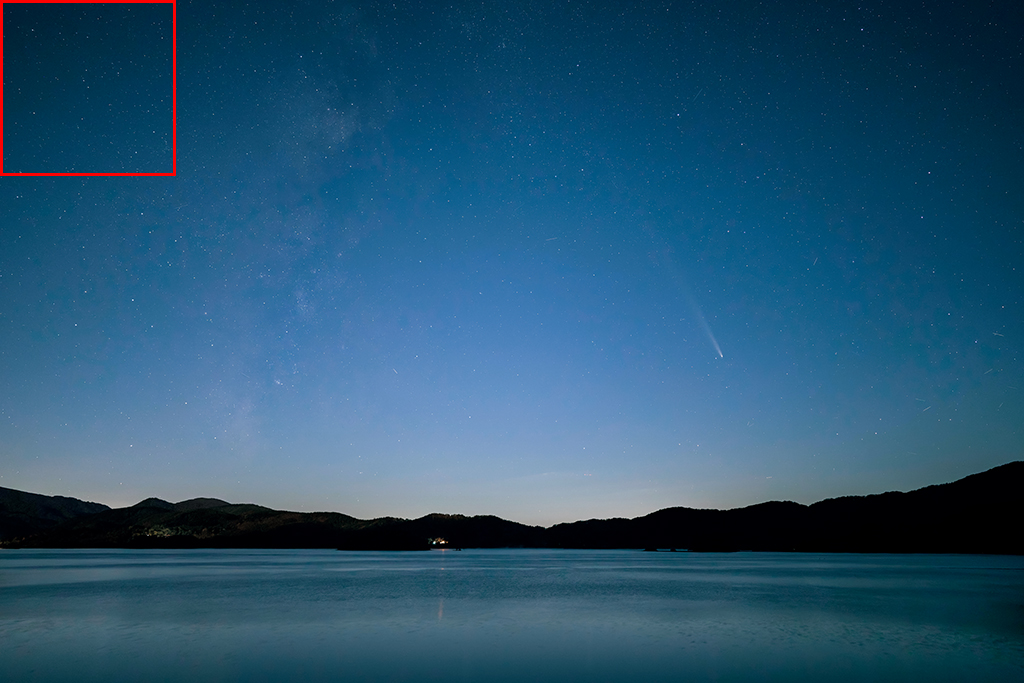 Comet Tsuchinshan–ATLAS (C/2023 A3) and the Milky Way, captured in the western sky. The comet passed close to Earth during the time I had the lens for testing, so I decided to try photographing it. The lens was bright enough to capture the comet’s core clearly. I was most impressed by how it renders point light sources like stars as distortion-free dots, even at the corners.